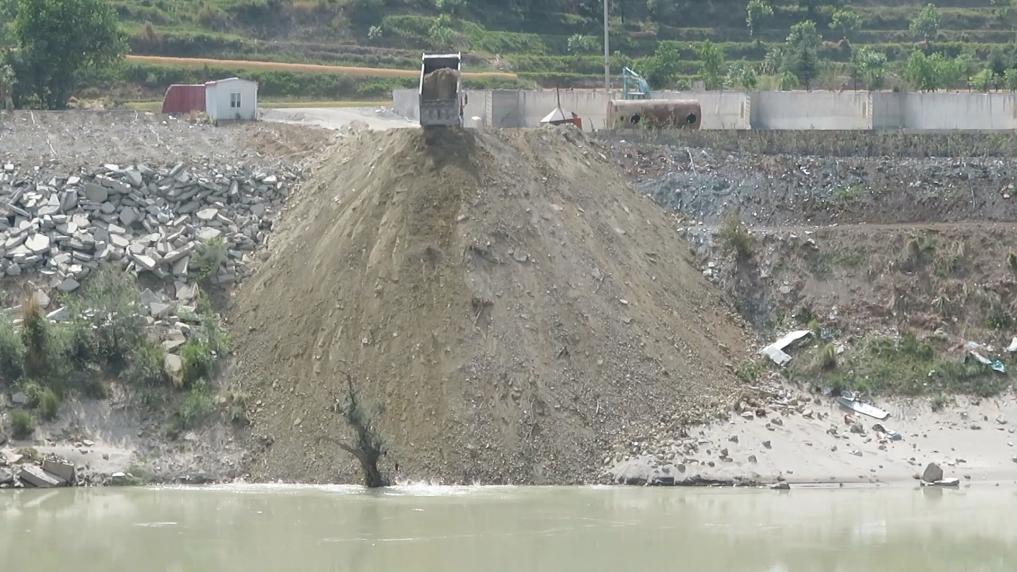 督察組連續多日蹲守發現,緊鄰該棄渣場,每天都有重型卡車將棄渣直接倒入金沙江。該處現有約5000立方米棄渣,侵占金沙江岸線47米,占用河道500余平方米,嚴重破壞岸線和河道生態環境。
