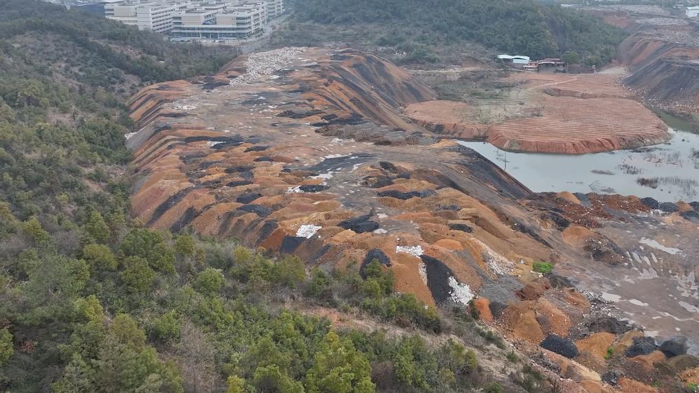 在江西,萍鄉市一直未制定建筑垃圾綜合利用規劃,目前既無消納填埋場所,也無綜合利用企業。督察發現,湘東區在楊家田地塊違規設置棄土場,2021年以來露天堆放工程渣土高達540萬噸,形成一座十余米高、占地數百畝的“渣山”。