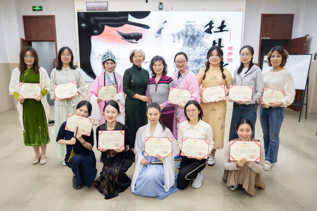 2024年4月22日,蘇州大學夜校昆曲班的學員結業合影,后排左五是該班授課老師、昆曲名家俞燕敏。(扈佐佩 攝)