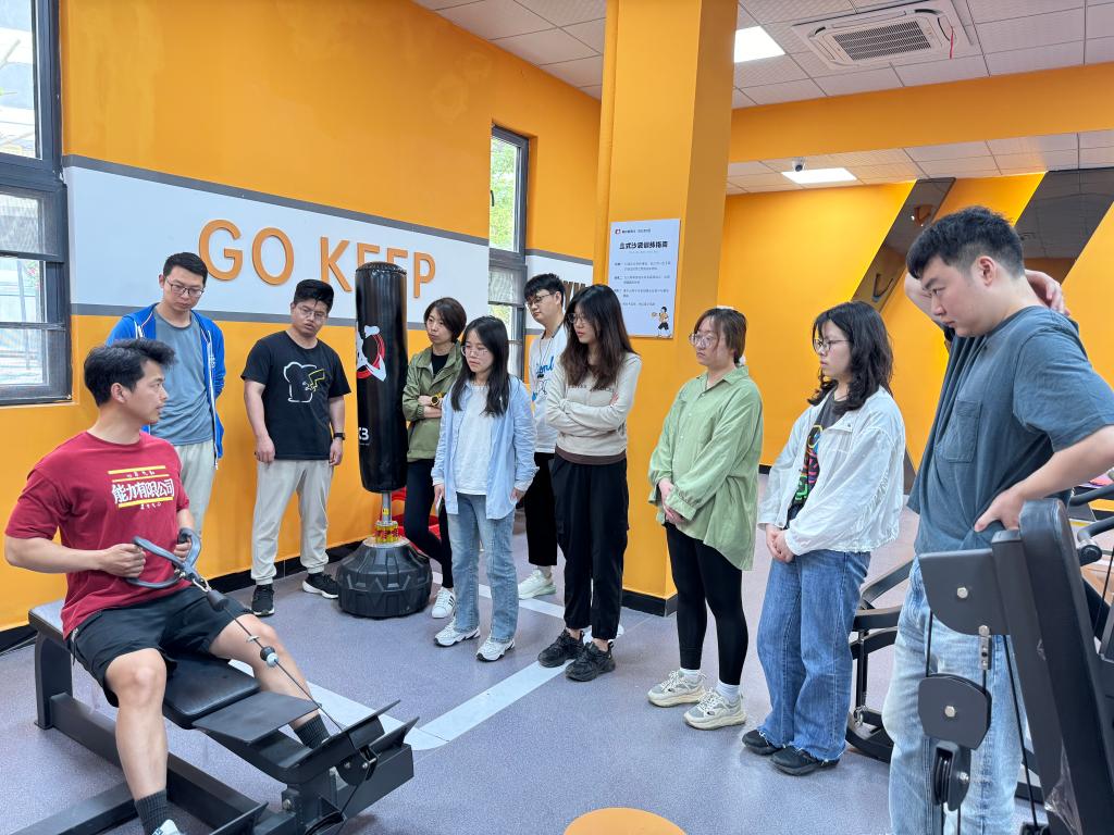 2024年4月22日,在湖北省武漢市東湖高新區,青年夜校學員體驗健身燃脂課程。(劉瑤 攝)