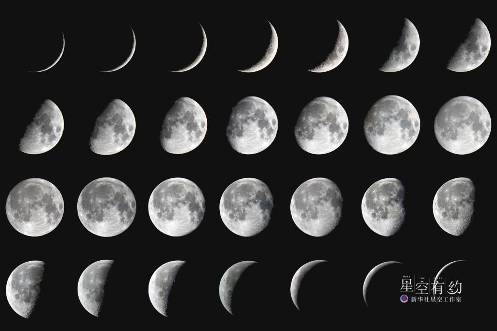 這是2021年累計用時3個月拍攝完成的農歷初二到二十九的“月相全家?!?。(楊婧拍攝)
