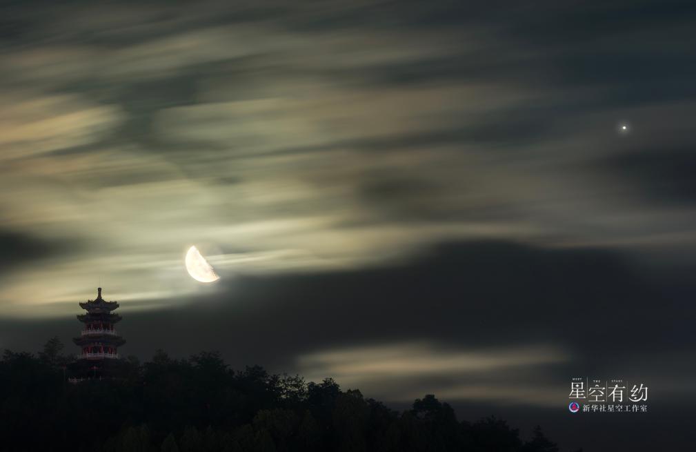 星空攝影師魯罡2023年8月9日凌晨在甘肅隴南拍攝的木星伴下弦月。(星聯CSVA供圖)