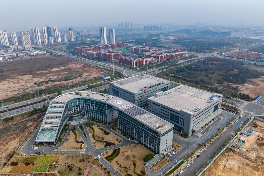 2024年3月16日拍攝的武漢華工激光工程有限責任公司大樓(無人機照片)。新華社記者 伍志尊 攝