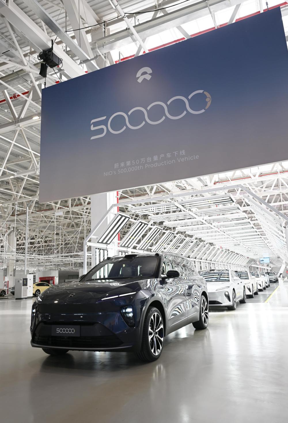 在安徽省合肥市新橋智能電動汽車產業園蔚來合肥第二工廠,蔚來第50萬臺量產車下線(2024年5月9日攝)。新華社記者 周牧 攝