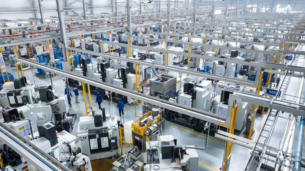 在位于湖南瀏陽經開區的長沙博大科工股份有限公司,工作人員在制造汽車零部件(2024年4月9日攝,無人機照片)。新華社記者 陳思汗 攝