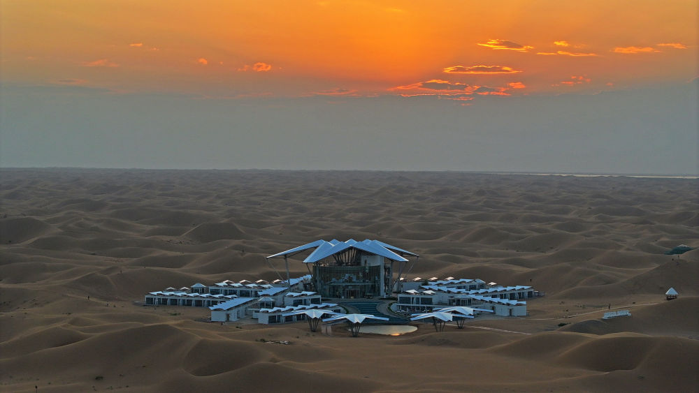 這是位于寧夏中衛市沙坡頭景區的星星酒店(2023年9月6日攝,無人機照片)。新華社記者 王鵬 攝