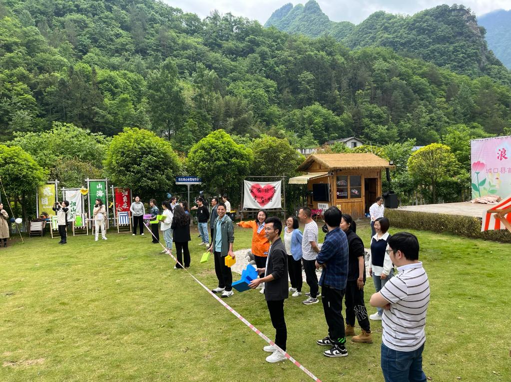 在位于重慶市城口縣嵐天鄉的星空露營基地,群眾正在開展團建活動。新華社記者周思宇 攝