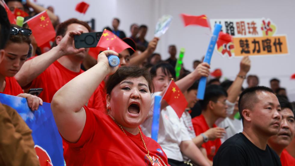 比賽現場為球員們加油助威的觀眾。(新華社發 馬甲兵 攝)