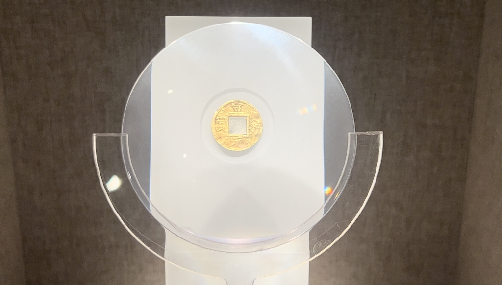哈爾濱市金上京歷史博物館內展示的北宋“宣和元寶”金幣。新華社記者 楊軒 攝