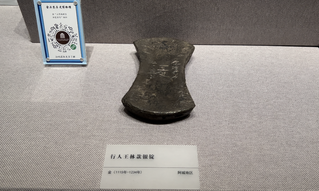 哈爾濱市金上京歷史博物館內展示的金代“行人王林款”銀錠。新華社記者 楊軒 攝