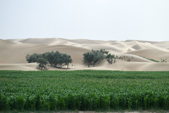 在內蒙古阿拉善盟阿拉善左旗拍攝的烏蘭布和沙漠(2022年7月14日攝)。新華社記者 貝赫 攝