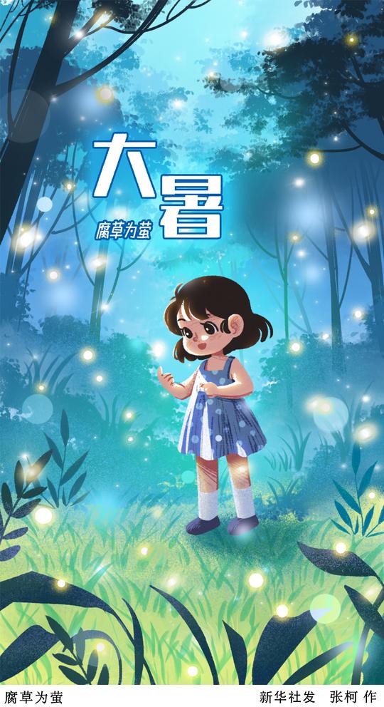 古人認為,大暑有三候:一候腐草為螢,二候土潤溽暑,三候大雨時行。這一時節,螢火蟲卵化而出,古人誤認為螢火蟲由腐草變化而成;與此同時,天氣悶熱,土地潮濕,還常有雷雨出現。