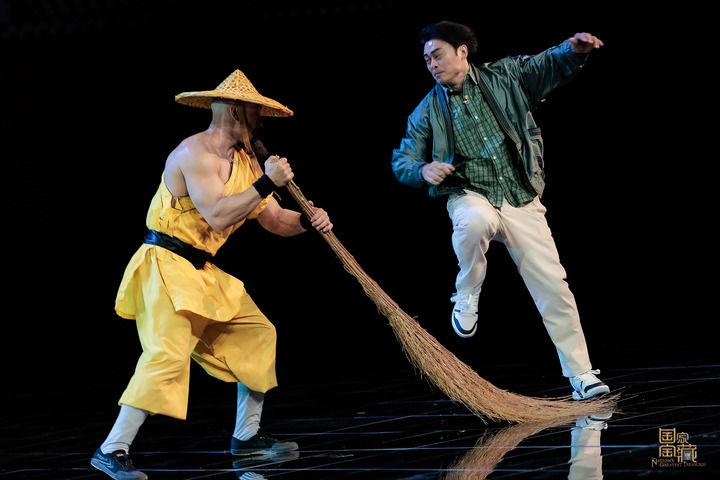 來自英國的“掃地僧”白龍與演員樊少皇共同演繹李小龍黃色戰衣前世傳奇?!秶覍毑亍饭﹫D