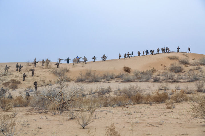 30畝、400畝、2000畝……隨著治沙經驗的豐富,阿拉善軍分區官兵治沙造林的面積逐年增加。戈壁灘上涌動的綠色身影,在沙漠邊緣筑起一道道防風固沙的生態防線。
