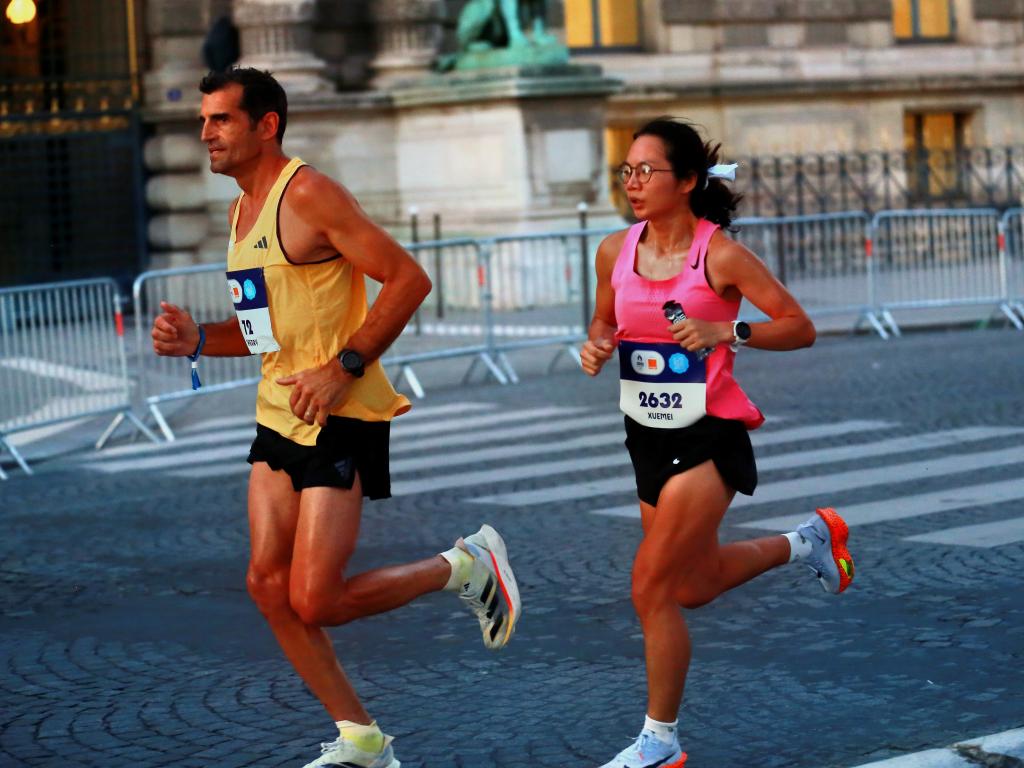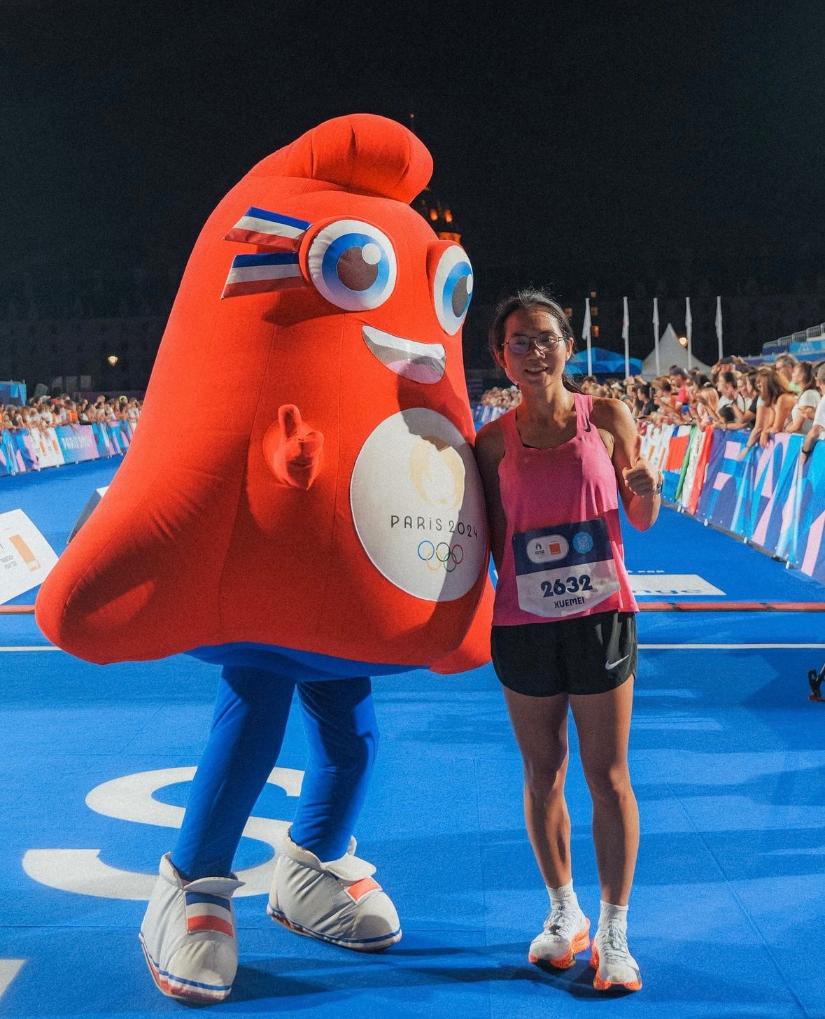 黃雪梅(右)在巴黎奧運會大眾馬拉松比賽中↑