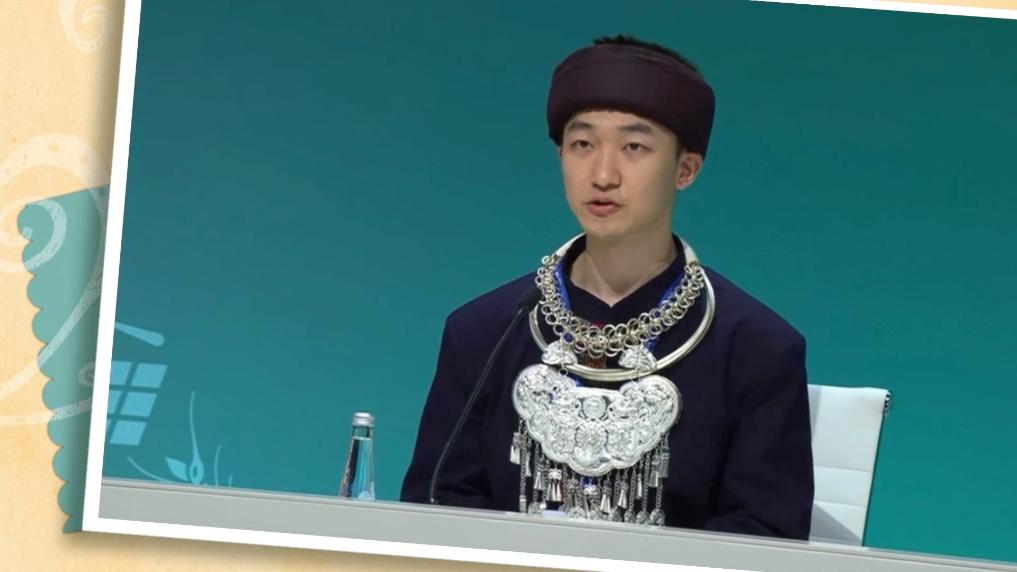 2023年,在第28屆聯合國氣候變化大會上,一位身穿苗族傳統服飾,用一口流利的英語分享生態保護觀點的中國青年引起大家的關注。他就是來自貴州省凱里市的“95后”苗族小伙謝宗旭。