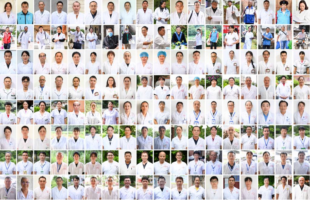 這是記者近年來采訪拍攝的144名鄉村醫生的肖像(拼版照片)。他們中除個別退休之外,絕大部分人仍堅守在基層,守護著農村群眾的健康。