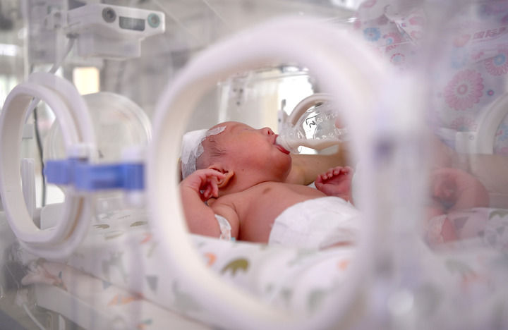 2024年6月1日,在西安國際醫學中心醫院新生兒科病房,護士為新生兒喂奶。 新華社記者 劉瀟 攝