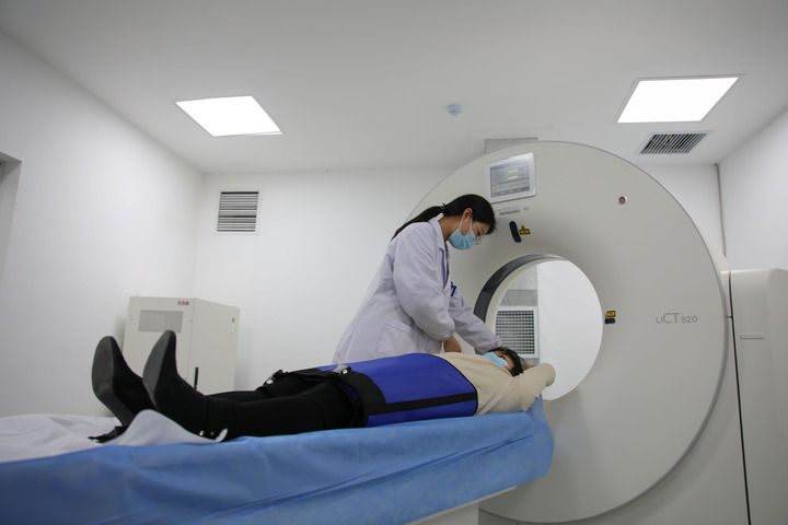 2023年3月2日,安徽省合肥市包河區煙墩街道社區衛生服務中心的醫護人員為患者進行CT檢查。 新華社記者 曹力 攝