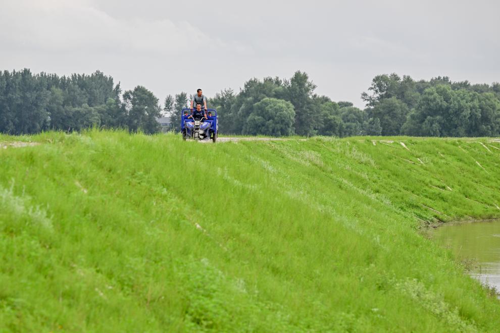 8月2日,科爾沁左翼后旗雙勝鎮群眾自發在東遼河大堤上巡護。新華社記者連振 攝
