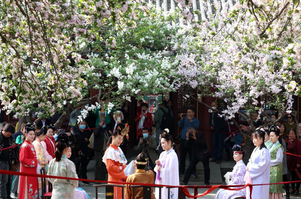 游客在正定榮國府景區觀看實景演出。梁子棟 攝