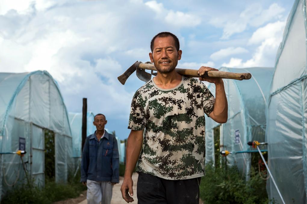 孫國亮干完農活收工返回駐村。(受訪者供圖)