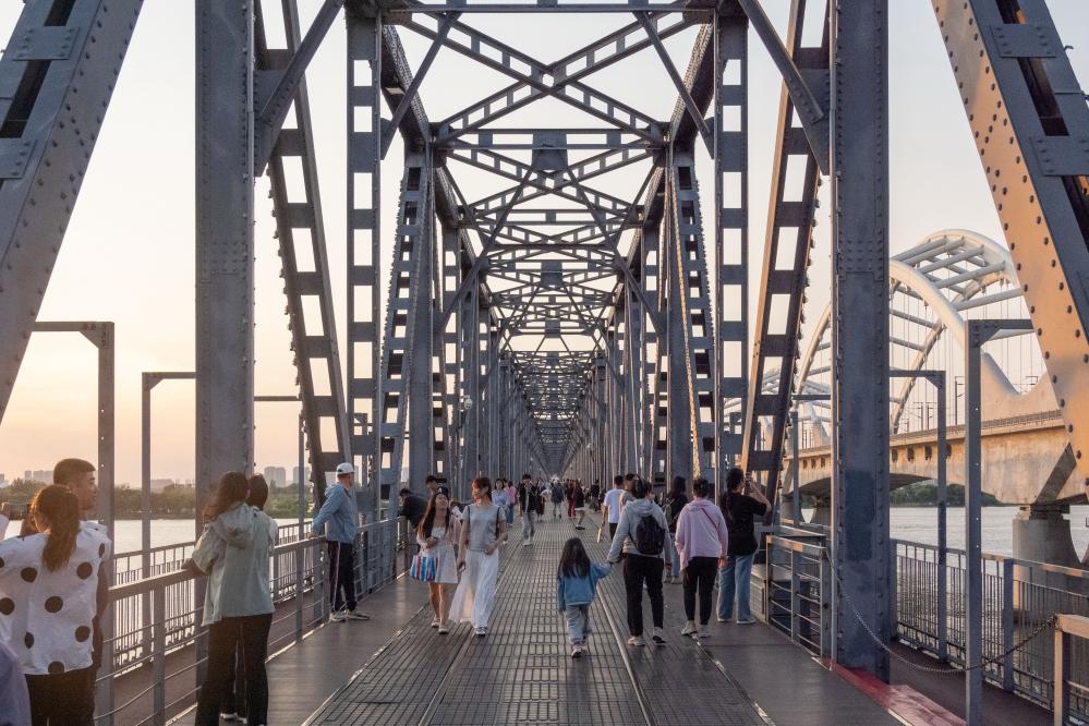2024年6月4日,人們在哈爾濱市被稱作“老江橋”的濱州鐵路橋上游玩。新華社記者 謝劍飛 攝