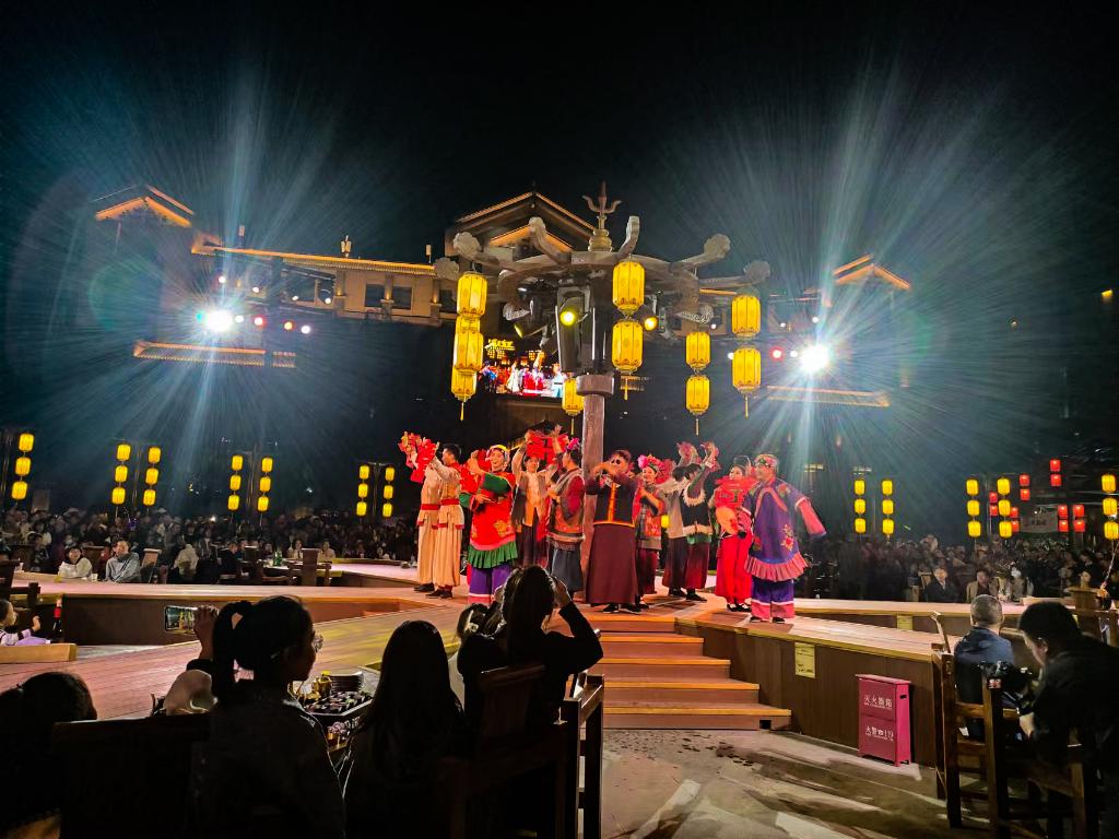 游客在漫葡·看見賀蘭沉浸式演藝小鎮觀看表演,這里已成為體驗銀川文化的熱門“打卡地”。(受訪者供圖)