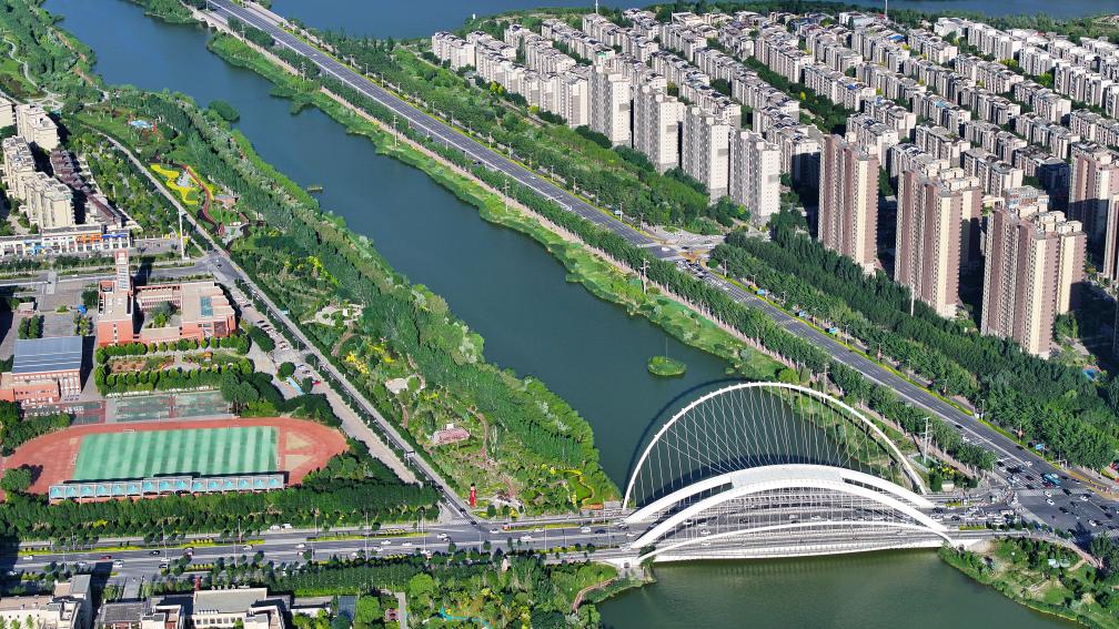 穿城而過的典農河,給銀川增添了水韻靈動,與城市建筑、濕地、湖泊等共同繪就“塞上湖城”美景圖。新華社記者 王鵬 攝
