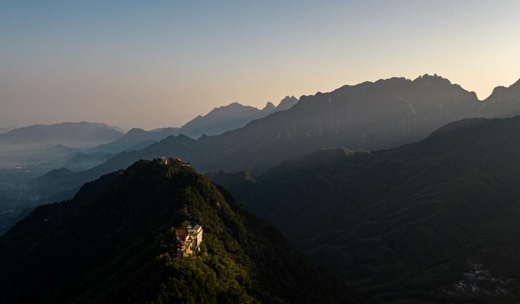 位于安徽省池州市青陽縣的九華山清晨日出時分景色。(無人機照片,2023年9月9日拍攝)新華社記者 郭晨 攝