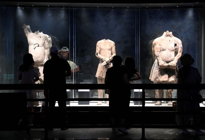 游客在位于秦始皇陵國家考古遺址公園的百戲俑坑參觀(2024年9月3日攝)。新華社記者 李一博 攝