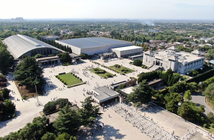 游客步入秦始皇兵馬俑博物館(2024年9月3日攝,無人機照片)。新華社記者 李一博 攝