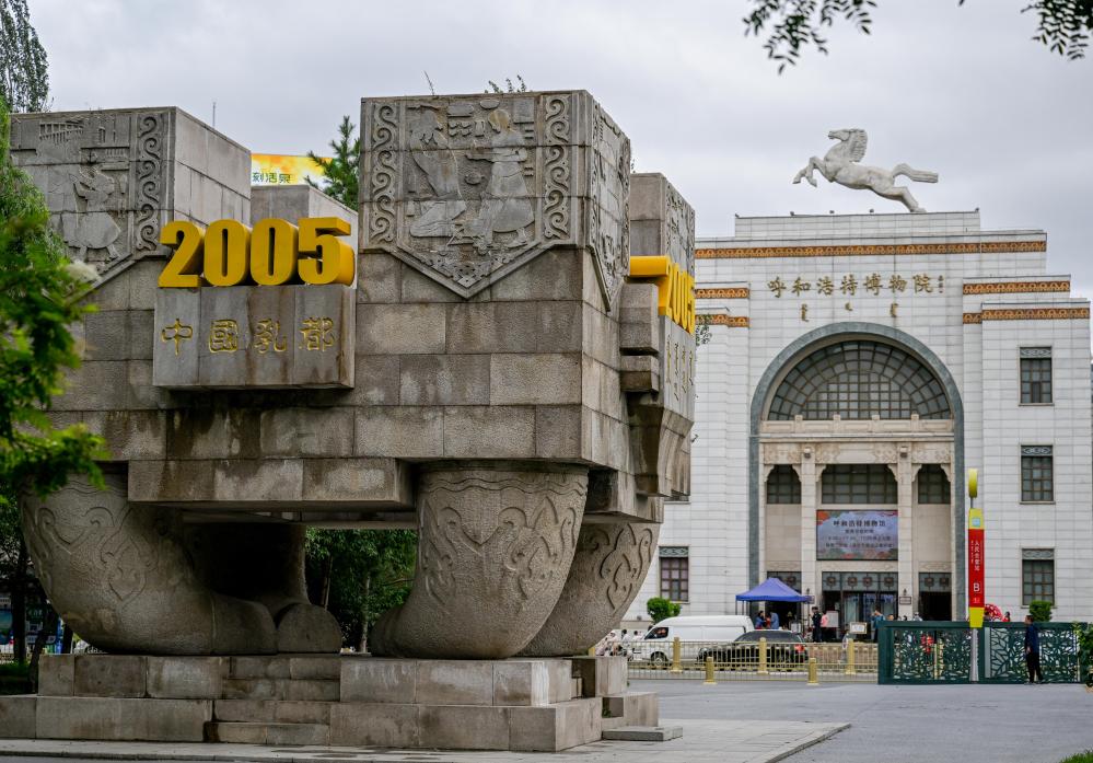 這是2024年8月11日拍攝的中國乳都雕塑和呼和浩特博物院。新華社記者 連振 攝