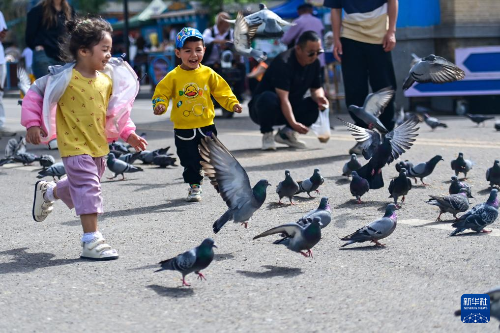 小朋友在新疆伊犁哈薩克自治州伊寧市喀贊其民俗旅游區游玩(5月11日攝)。新華社記者 丁磊 攝