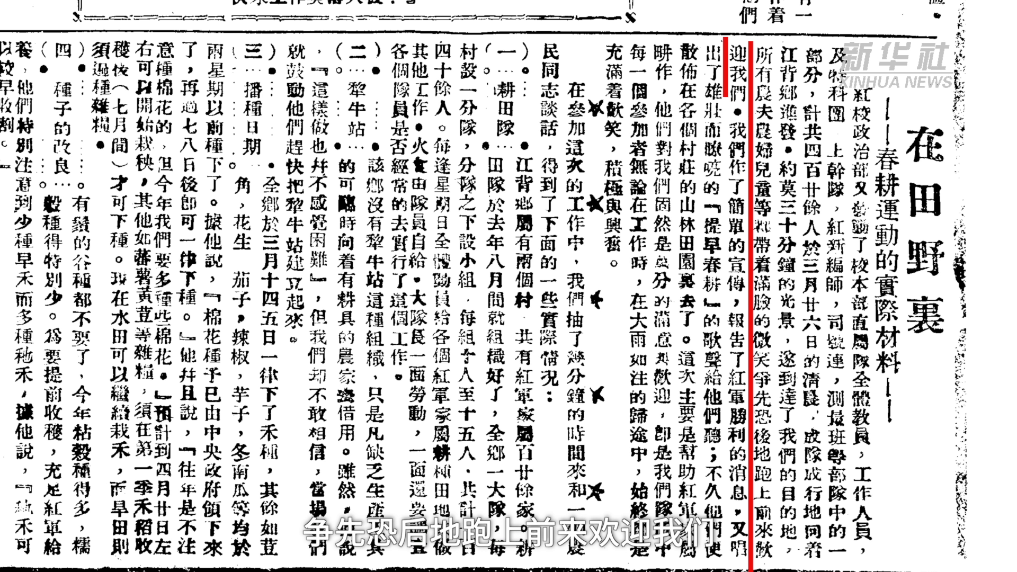 鉛字里有魚水情深。當年,《紅色中華》報用了大量筆墨傾情謳歌蘇區干部群眾站在一起、想在一起、干在一起的深厚情感。一篇介紹蘇區組織干部幫助農民春耕的報道這樣記載:“所有農夫農婦兒童等都帶著滿臉的微笑,爭先恐后地跑上前來歡迎我們?!?/p>