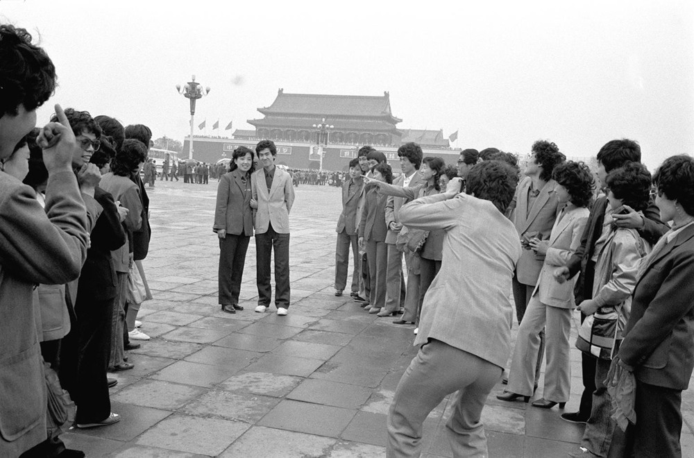 1987年5月1日,遼寧省丹東汽車制造廠23對新婚夫婦在天安門廣場拍照留念,他們是在廠里參加了集體婚禮后來北京旅游的。新華社記者 鄭書福 攝