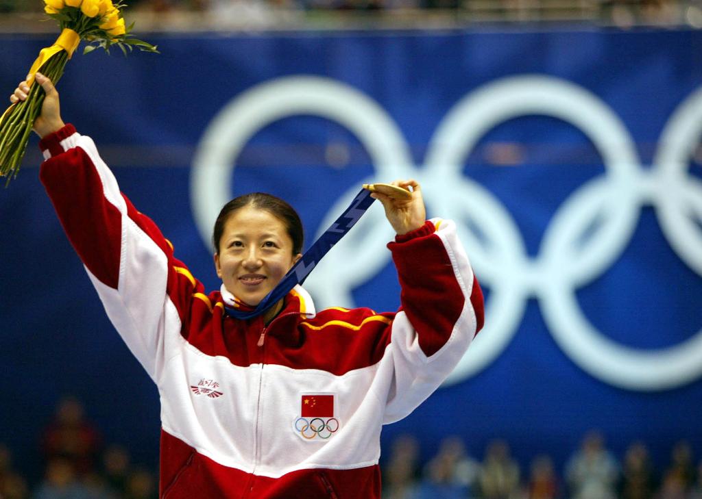 2002年2月16日,在鹽湖城第19屆冬季奧運會短道速滑女子500米決賽中,中國選手楊揚奪得金牌,實現了中國在冬奧會上金牌“零”的突破。新華社記者 趙迎新 攝(數碼傳真照片)
