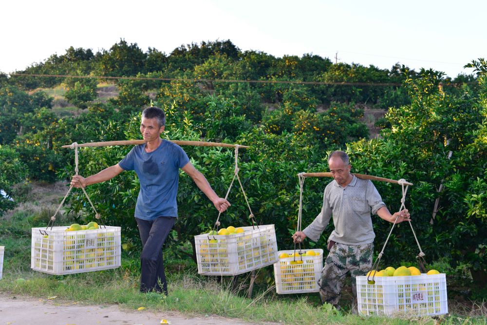 江西省瑞金市黃柏鄉坳背崗臍橙基地,果農在搬運新摘的臍橙(2023年11月1日攝)。新華社發(李華誠 攝)