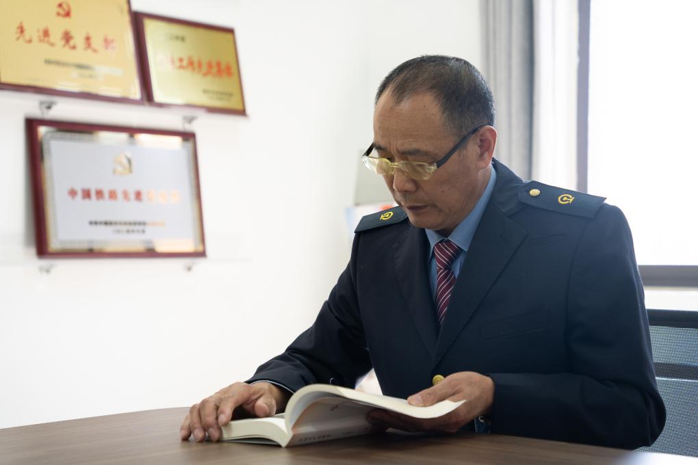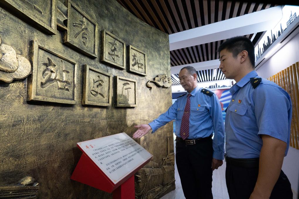 劉丙振在站史廳給年輕同事講述車站歷史。通聯照片 于洋攝