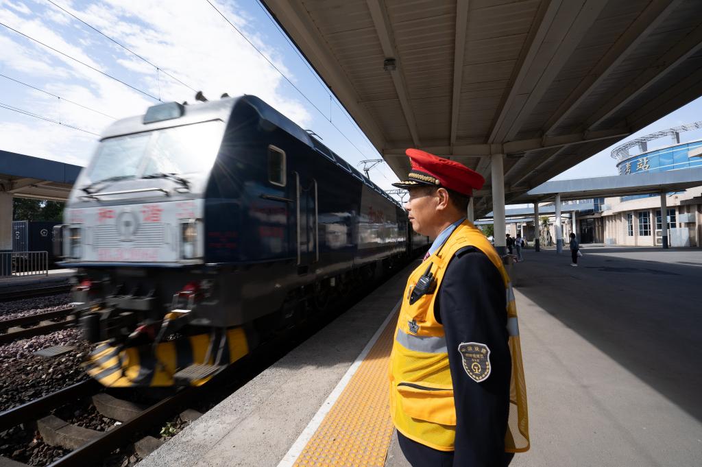10月1日,劉丙振在站臺正在進行接車作業。 通聯照片 于洋攝