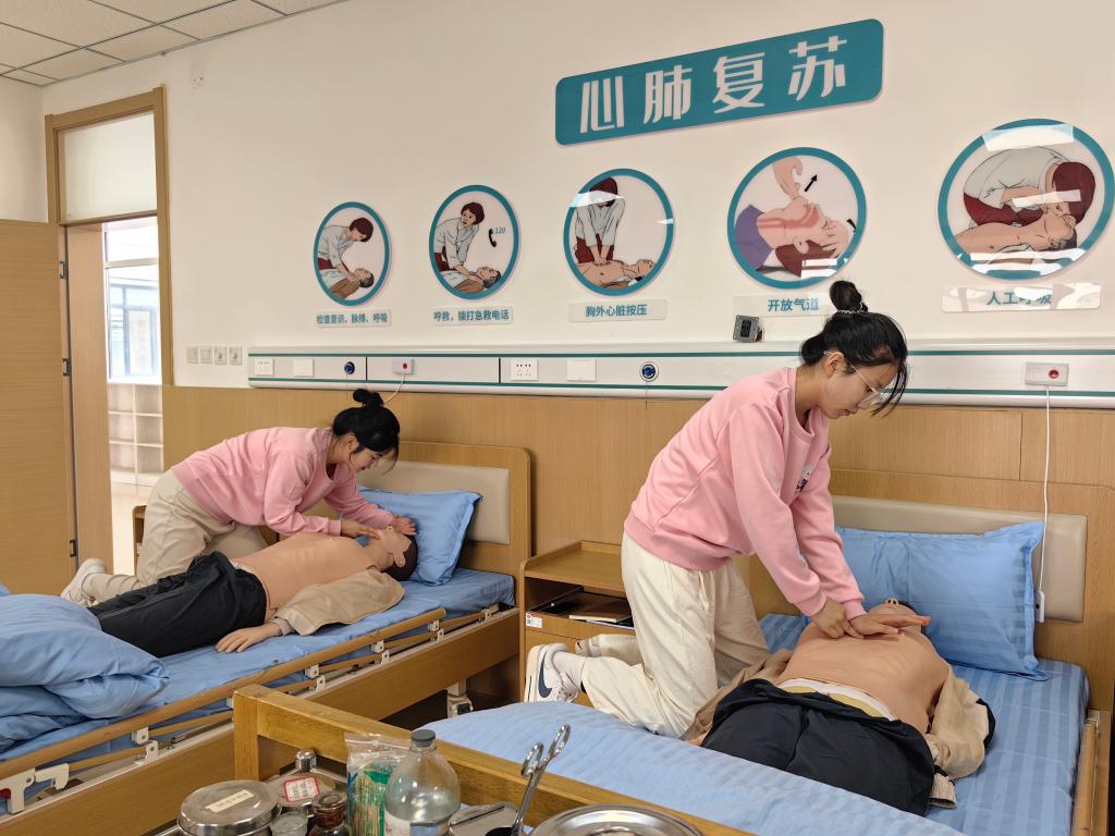 2024年9月25日,山東女子學院養老服務管理專業學生在練習心肺復蘇。新華社記者張力元 攝