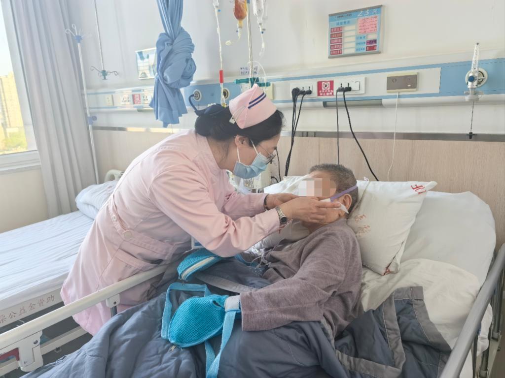 4月11日,太原市第二人民醫院老年病科護士正在為患者更換鼻貼。新華社記者 馬曉媛攝