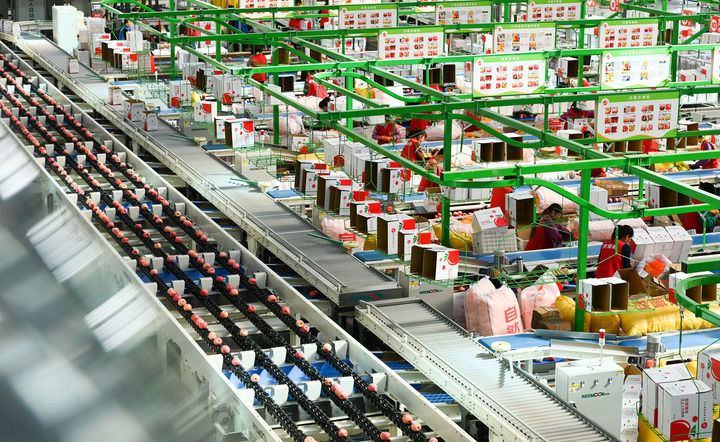 工作人員在延安市洛川縣一家果業企業打包蘋果(2023年10月20日攝)。新華社記者 鄒競一 攝