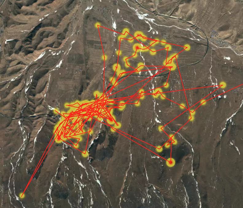 這是根據衛星定位項圈回傳數據制作的藏狐“狐三條”的活動軌跡圖。(受訪者供圖)