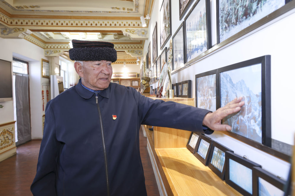 2024年9月15日,在新疆塔什庫爾干塔吉克自治縣提孜那甫鄉,巴依卡·凱力迪別克在家中講述護邊往事。新華社發(姬文志 攝)