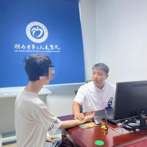9月19日,在湖南省第三人民醫院,醫生正在給年輕的痛風患者診斷。(受訪者供圖)