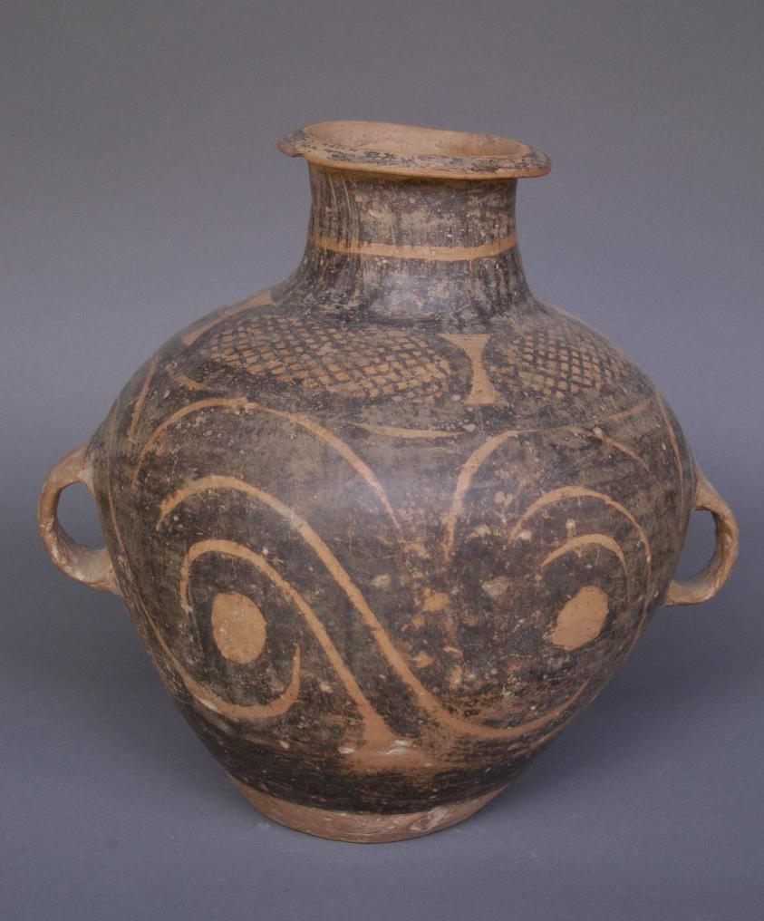 圖為馬家窯文化中期的四圈漩渦紋彩陶雙耳罐。新華社發