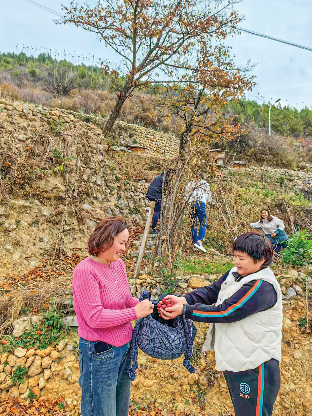 徜徉在小路上,偶遇從河南新鄉長垣市自駕而來的游客于女士一行人,她們正在山坡上采摘剛剛熟透的山楂。于女士告訴記者,她們這幾個鄰居經常自駕來松廟村游玩,夏天時還常在村里小住。
