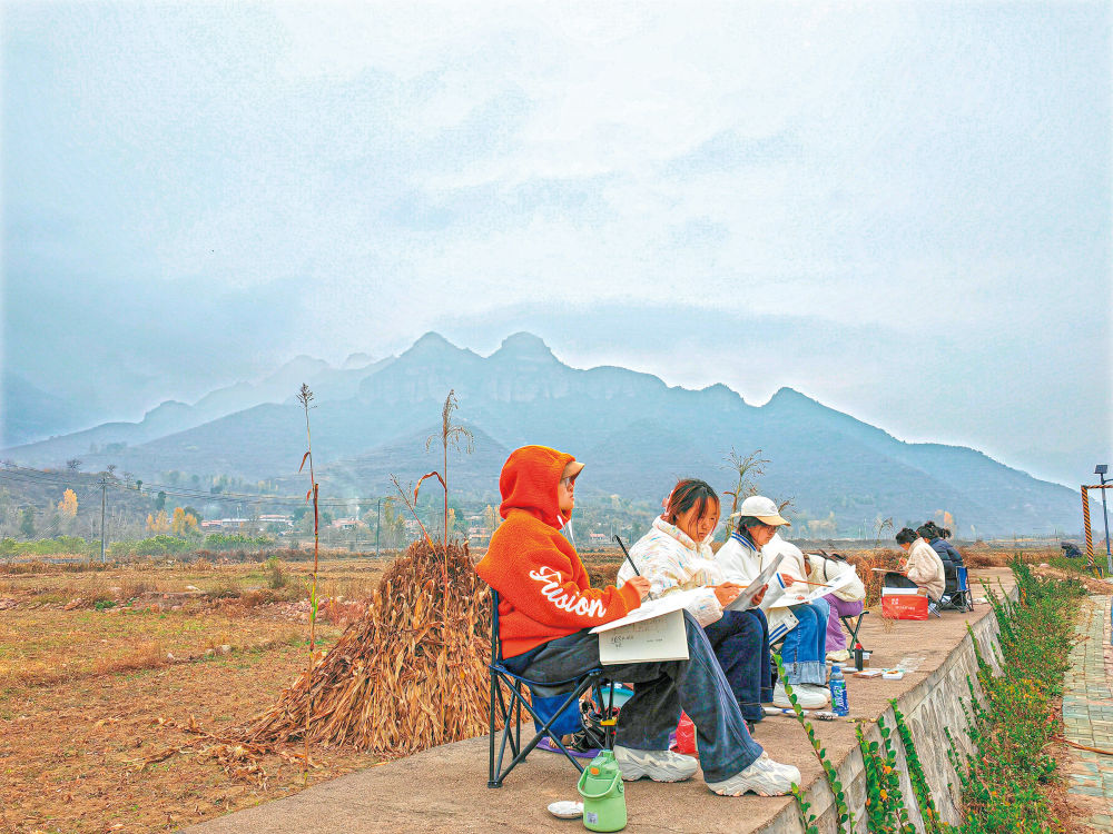 雖然已時近立冬,但來自晉中學院的一百多名師生仍堅持每天外出寫生?!斑@里是太行山中段最雄美的地方,來到這里可以讓學生們接受大自然的洗禮,同時感受地方文化,讓他們積累創作素材的同時了解農村、熱愛農村?!睍x中學院國畫老師孟冠華說。
