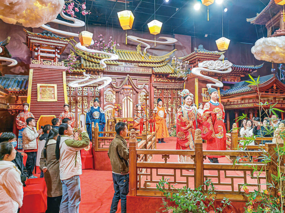 “高平的‘喜’文化不僅歷史悠久,而且禮儀周全。我們這里婚禮是在晚上,契合‘結婚于昏’的古制。鬧洞房也有一套嚴格的禮儀規范,古樸文明?!毕叉偺K莊景區副總經理趙偉說。